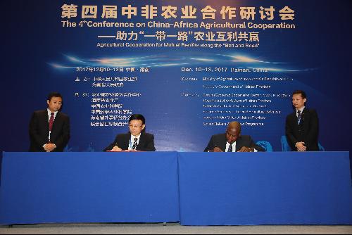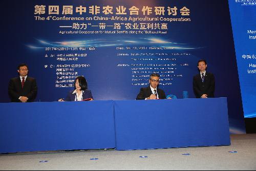 第四届中非农业合作研讨会上,在农业部党组成员毕美家、海南省副省长何西庆、商务部西亚非洲司商务参赞周兆明、国家粮食局外事司副司长曹颖君、发改委气候变化司副巡视员田成川、联合国粮农组织驻华代表马文森先生、联合国世界粮食计划署驻华代表屈四喜、非洲发展新伙伴计划规划署主任埃瑟琳·福塔邦、世界银行农业局局长西蒙·埃胡伊等国内外重要嘉宾的共同见证下,签署合作协议(备忘录)8项。