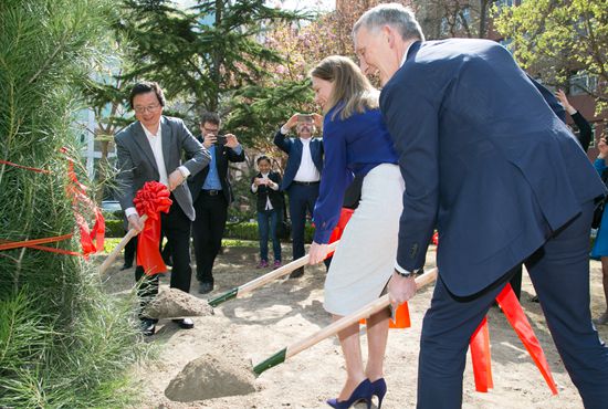 斯考腾对双方的友谊表示高度赞赏。她表示,双方相隔万里,但合作十分紧密,希望双方科学家能够碰撞出更多的智慧火花,带动更多农业科研单位、企业参与到双边合作中。摩尔表示非常高兴能够在中国农科院种下友谊之树,并引用中国谚语“十年树木,百年树人”,寄语双方以此为新起点,加深科研合作,共同培养人才。